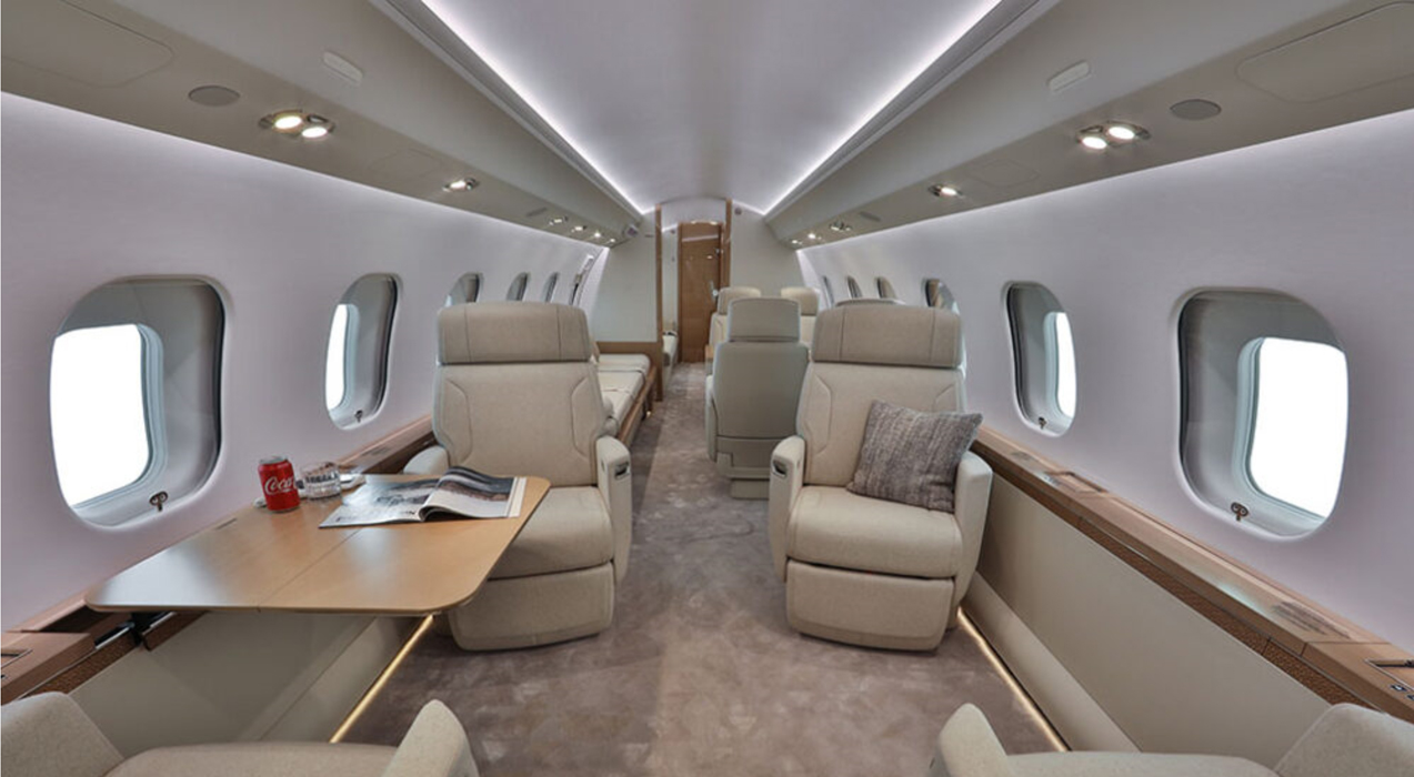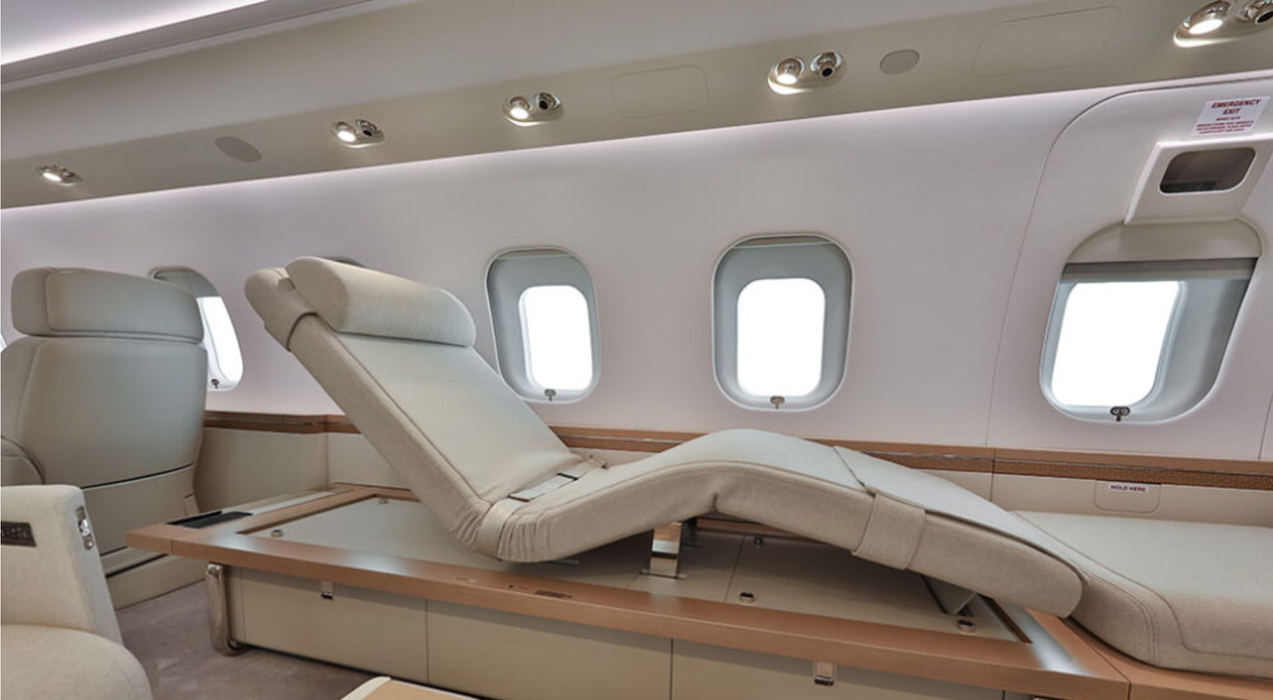 Club Seats are patented Bombardier executive single seats capable of berthing and reclining, tracking and swiveling with legrest, and inboard armrest storage. Two (2) stowable tablet holders with power provisions located in the cockpit